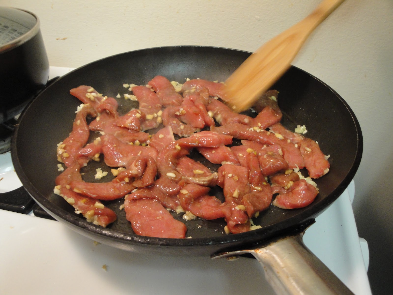 Slice your beef thinly into long strips like you'd see in stir-fry.